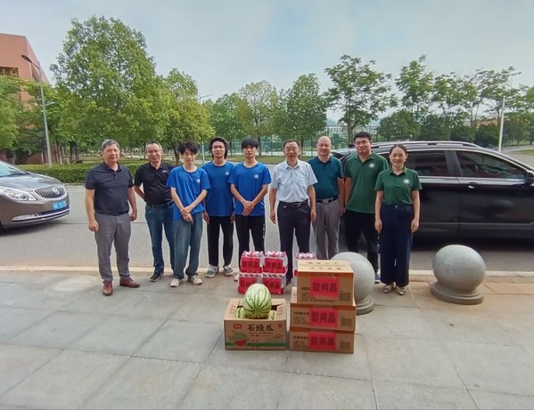 本网讯 炎炎夏日送清凉,浓浓关怀沁人心。8月2日上午,校领导李开灿、许光、王胜国、王红兵一行先后走访了招生就业处、后勤保卫部、考研备考自习室等地,看望暑期坚守工作岗位的教职工和考研备考学生,为他们送去防暑降温慰问品,向他们致以亲切问候和诚挚敬意。