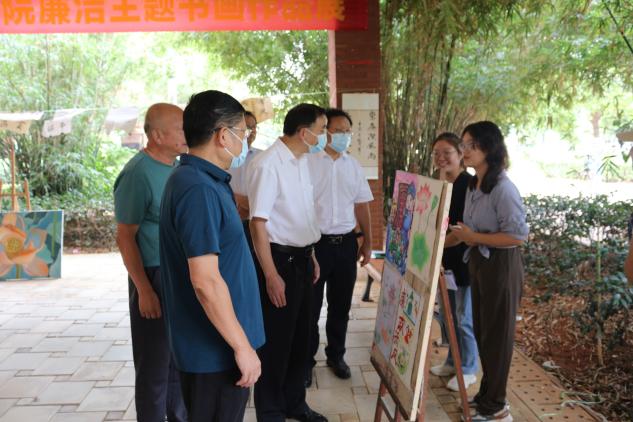 为深入学习习近平总书记关于党的自我革命战略思想和全面从严治党的重要理论,加强党章党规党纪的宣传教育,着力促进清廉文理建设,根据8xbet官方网站2022年党风廉政建设宣教月活动方案的要求,教育与艺术学部按照党群工作部的工作要求,于2022年9月23日上午11:00在活动中心承办了廉政主题书画作品展。文理学院校长李开灿,常务副院长杨学斌,党委书记杨邓红,副书记杨之毛,副院长张志华、王胜国,党政办主任徐金光等领导应邀参加此次作品展。