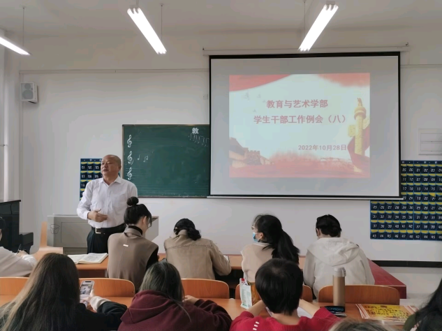 2022年10月28日中午12:00,在实验楼1-403多媒体教室组织召开学生干部工作例会。学部各辅导员、全体团学会干部及各专业班级负责人到会,工作例会由总支书记李先华主持。
