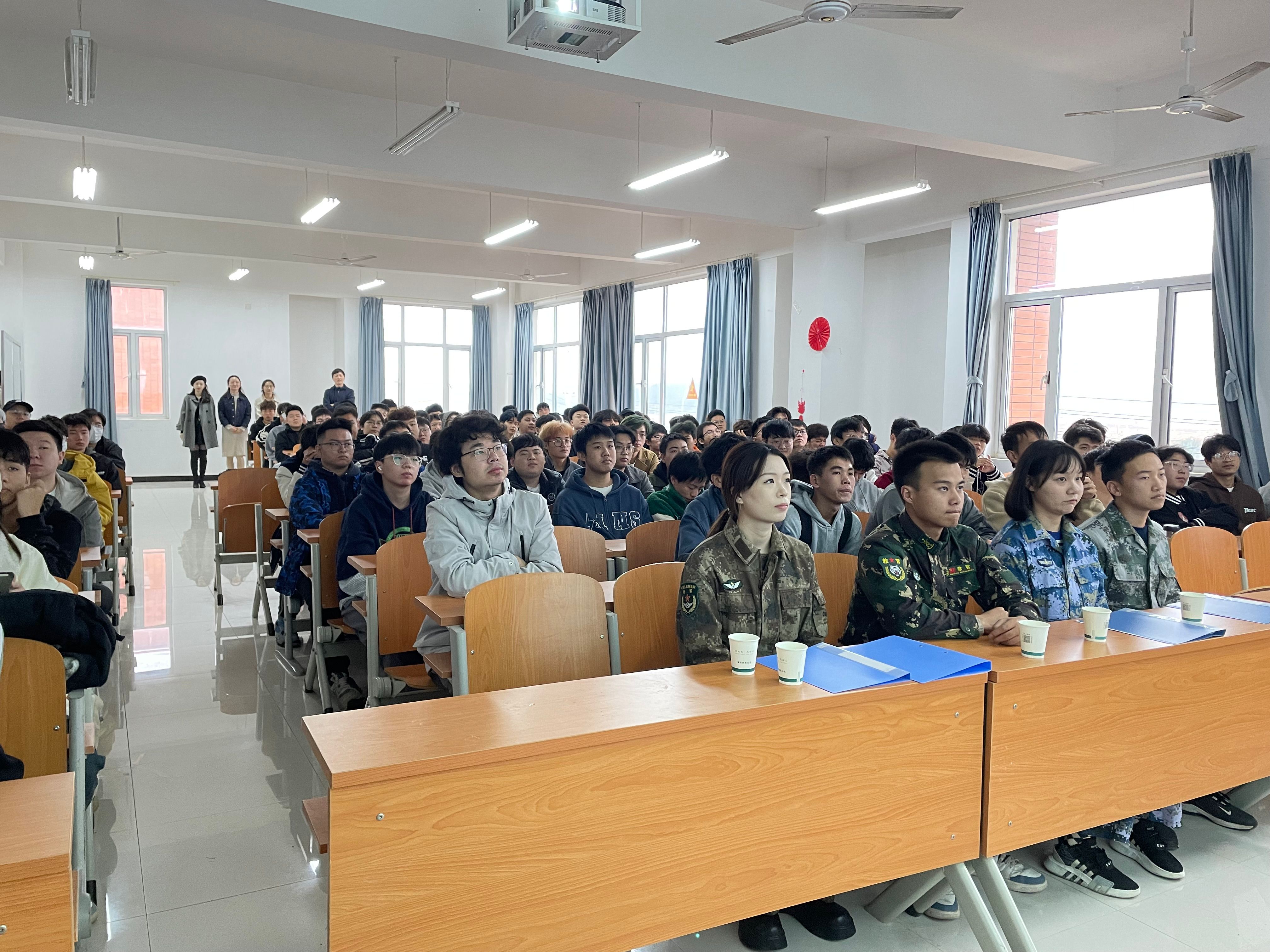 为鼓励学生积极响应国家征兵号召,为国防事业贡献青春力量,202211141200,教育与艺术学部召集学部全体男生一百余人在实验楼1-401举行征兵宣讲会。
