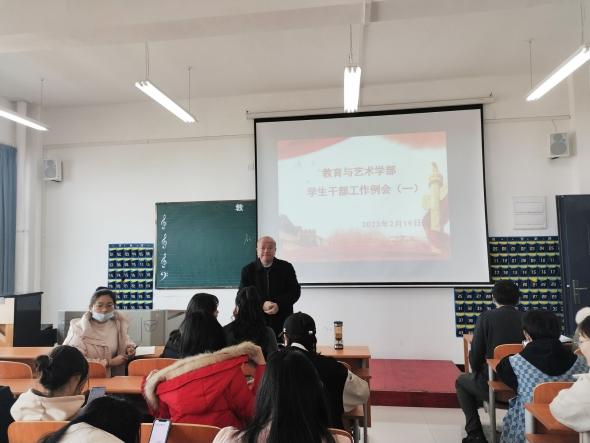 2022219日中午1200,在实验楼1-403多媒体教室组织召开学生干部工作例会。学部各辅导员、全体团学会干部及各专业班级负责人到会,例会由学部总支书记李先华主持。