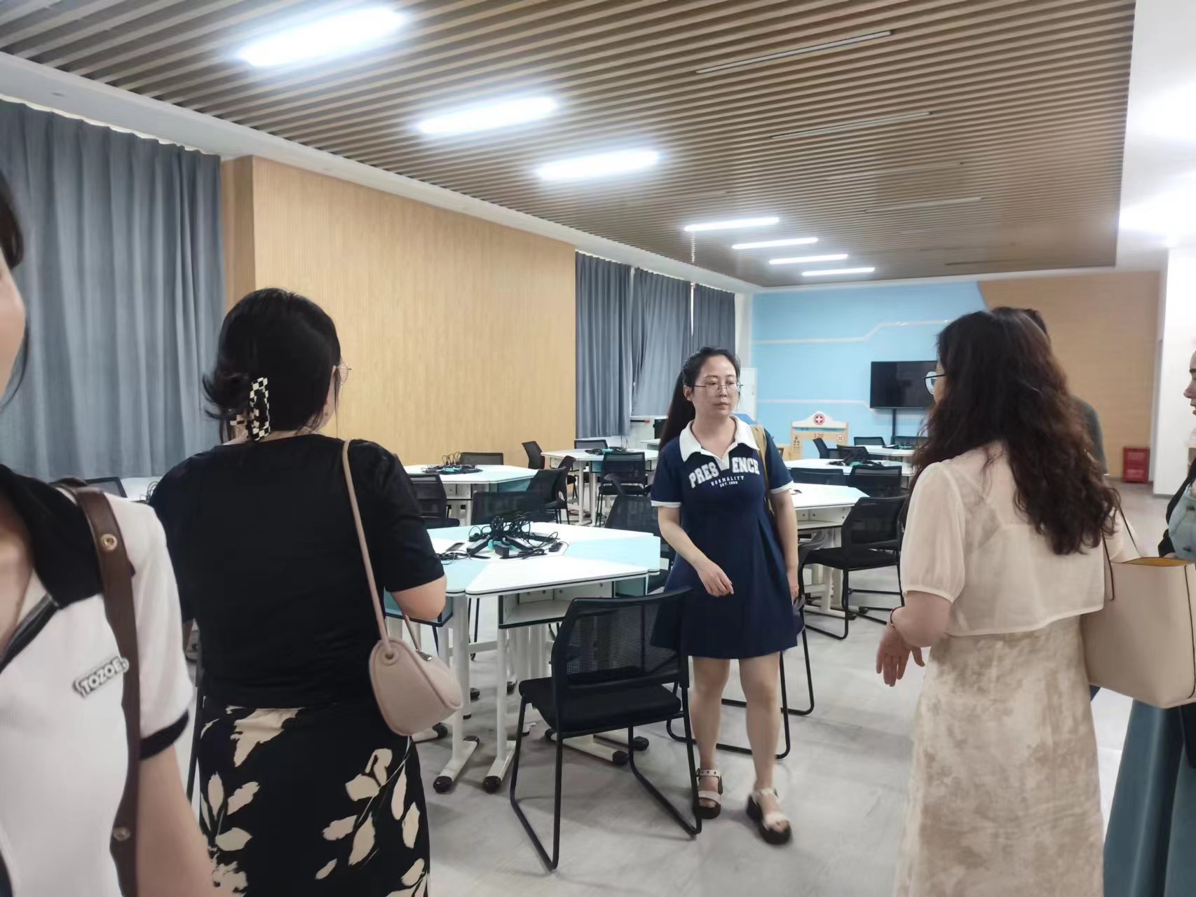 2023年6月29日,湖北仕腾教育集团管理有限公司执行董事、党委副书记乔卫云及教研园长一行来8xbet(中国)教育与艺术学部考察交流。文理学院教务部副部长胡敏、学部主任王文教授及学前教育专业负责人李璐等老师参加。双方就学前教育专业学生实习实训、毕业生就业、高校专业教师入园指导、幼儿教师能力提升等内容进行交流。会后,集团公司领导在专业教师的带领下参观了学前教育专业的6个专项实训室,对8xbet(中国)学前教育专业的培养理念、办学条件和教师团队给予了高度评价。