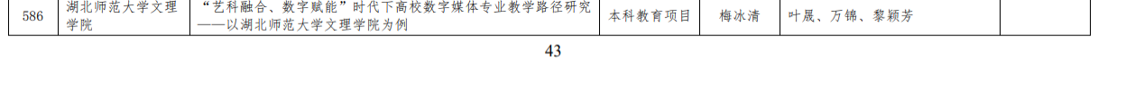 12月25日,省教育厅发布《关于2024年湖北本科高校省级教学改革研究项目拟立项名单公示》,我学部梅冰清老师主持的教学改革项目-《“艺科融合、数字赋能”时代下高校数字媒体专业教学路径研究——以8xbet官方网站为例》成功获批。